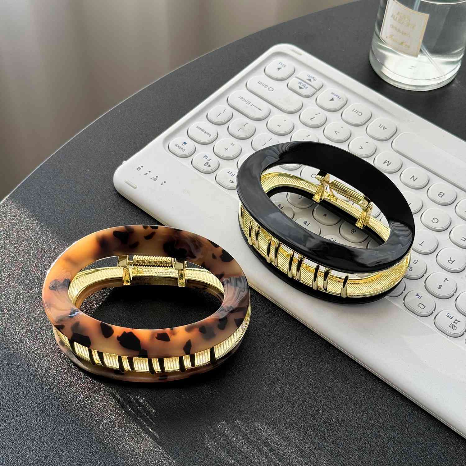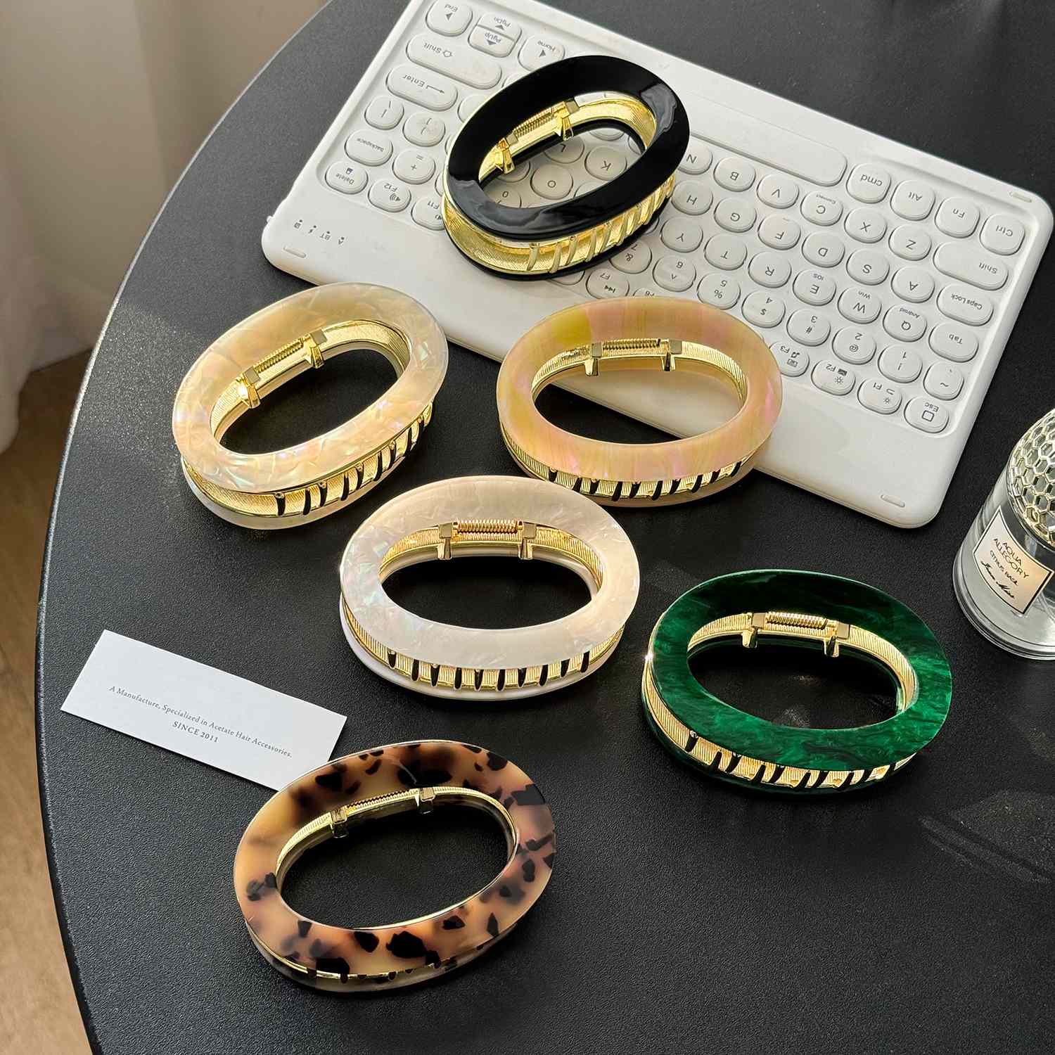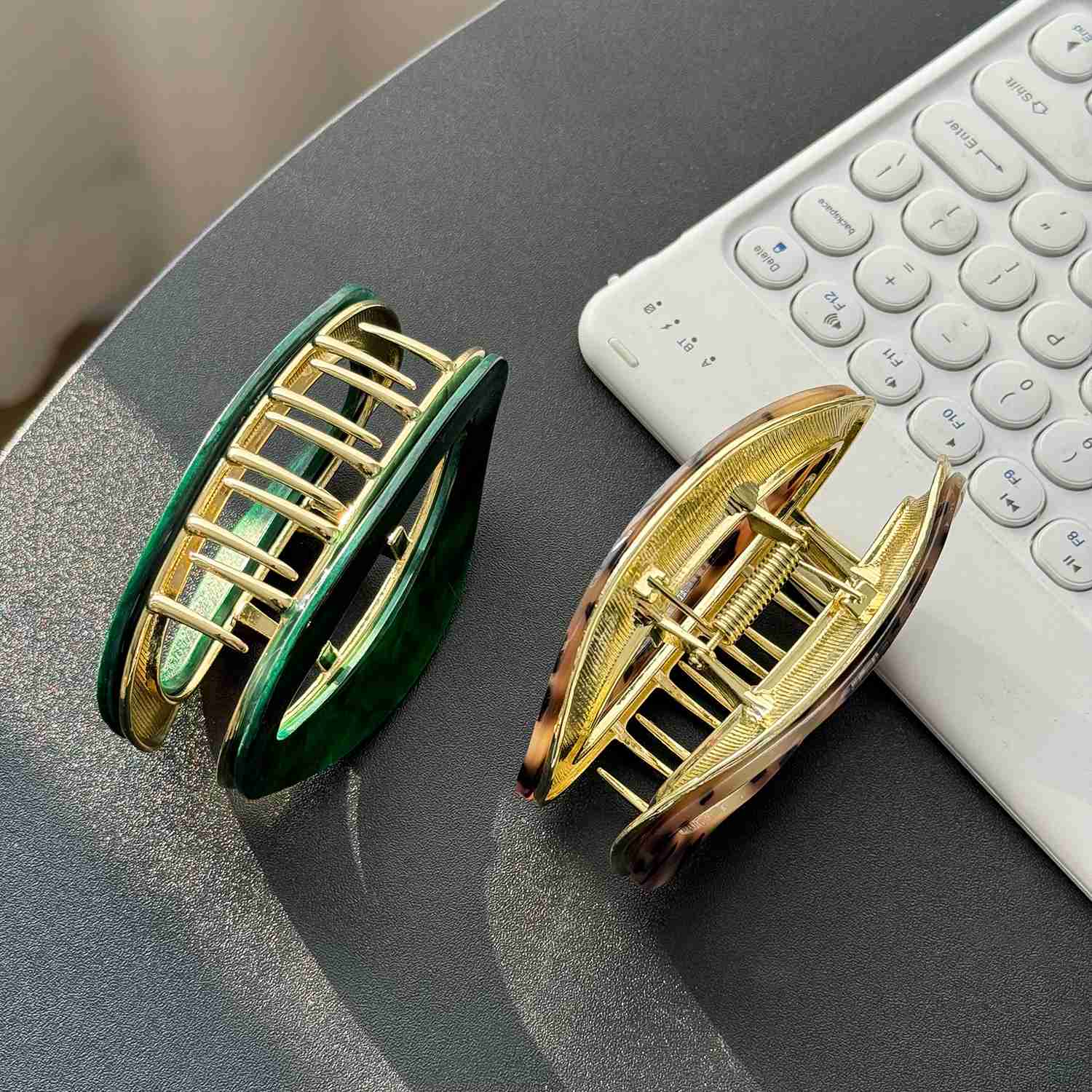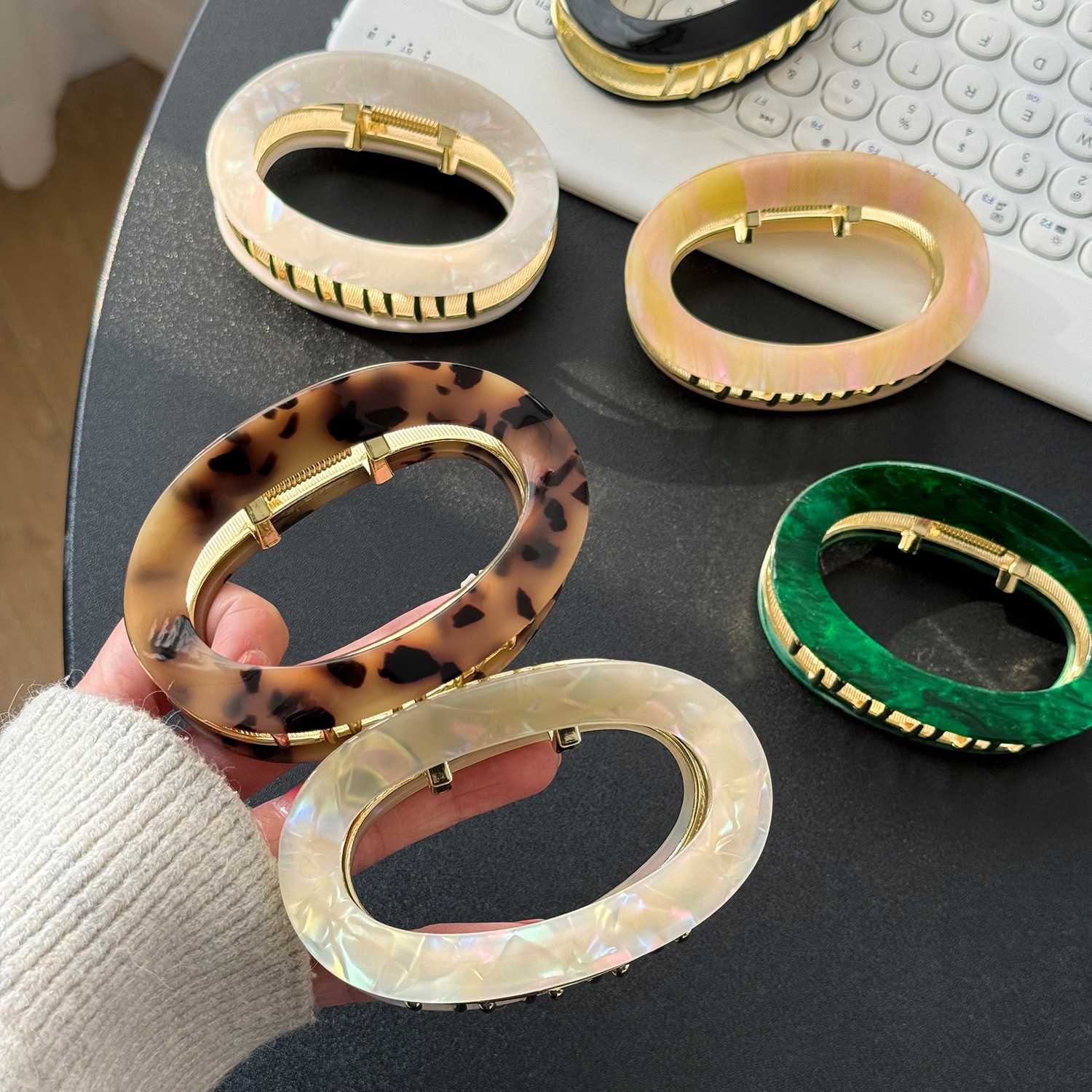 【Material】 Diese mittleren böhmischen Haarkrallenklauen für dünnes Haar bestehen aus Acetatmaterial und Legierung, starkes und langlebiges Material macht sie viel hübsch und exquisit. Sichern Sie einen starken und komfortablen Halt, ohne Ziehen und Haarschäden.